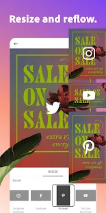 + Automatic resizing - Resize your design to fit perfectly on any social platform