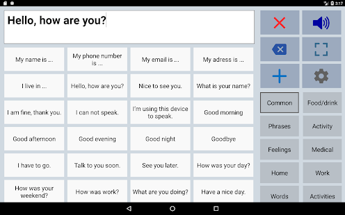 Descriptions : Voice Assistant AAC is a text-to-speech app for people with speech disabilities, for example due to aphasia, MND / ALS, autism, stroke, cerebral palsy or other language problems.