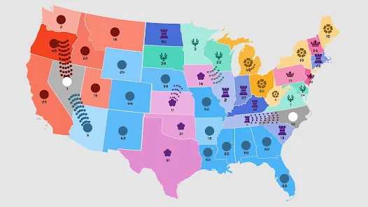In State.io, players control a specific portion of territory and spend time expanding their influence. But there will always be certain opponents who will prevent you from doing so. The areas are clearly designed using colors, a white dot and a number. This number represents the number of troops you or the enemy have in a location. From there, you start acting, deploying your troops accurately and judiciously compared to the current situation.