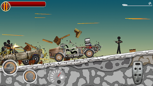 Stickman Annihilation II - Continuation of the adrenaline-pumping stickman racing action. The user waiting for a crazy race on the hilly slopes is filled with a bunch of enemies. To reach the finish line, the player must overcome the resistance of all enemies before they drain the hero's health bar. In addition, a player appears as a fast vehicle, which can also be improved by installing new wheels, safety cages and a variety of deadly weapons.