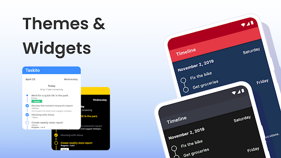 In Taskito you fully organize your schedules and have easy access to them. In particular, each user will set timelines corresponding to different tasks in a list per day. You can easily observe them in general or in detail. For example, you'll see a day's schedule organized and highlighted so you know what you need to do next. One factor that impresses users when using the application is the variety of themes that the application possesses. Many users will be impressed by it after experiencing it for the first time and of course the theme is never set. Therefore, they will be the ones to decide the color and application theme to have the feeling of experience and observation of their work. In fact, many people will love this feature.