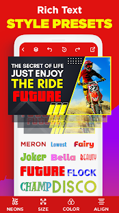 + Availability of tons of uniquely designed typography fonts and effects to create