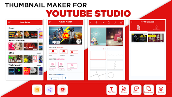 Descriptions : This free thumbnail maker for YouTube is a quick and easy way to create stunning thumbnails, banners, and cover photos for multiple social media platforms. This offers awesome thumbnails and banners for YouTube, the best experience you can have with a design app.