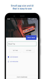 Descriptions : Set a timer, or how many seconds, minutes, hours, days, days, weeks, or months to leave an event that matters to you. Create as many countdowns as you like, and they will automatically be sorted by date. Countdown until a certain date; It can be Christmas, New Year 2020 or your next kayak tour. Select and adjust any image for a countdown, or accept the default background for the phase colors. You can create reminders and share the countdowns you have created!