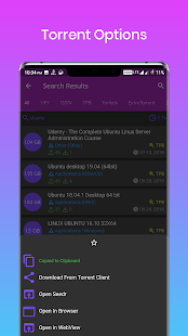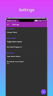 + Change the torrent search engine url manually in case the default doesn't work in your country or ISP