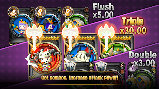 Triple Fantasy - Pixel map adventures with RPG elements, party battles and more, giving players a great time to accomplish a very important mission. The king is putting his hopes on them, which is extremely worried about the frequent attacks of various aggressive creatures on the border areas of the country. It is necessary to put together a department and pay the attacker a return visit. The game mechanics not only requires the proper and timely use of cards. Ideally played elements can always improve the desired result. So it's better to move the mindless throws of the opponent with cards.