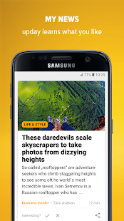 Descriptions : upday finds the news and stories that really interest you. With plenty of rocket science and a touch of magic, news from hundreds of sources is gathered just for you. Everything in one place, exclusively on your Samsung device. And the more you use upday, the better your referrals get. This means that you can enjoy your very own personal news stream "My Messages" with relevant, engaging and easy-to-navigate content.