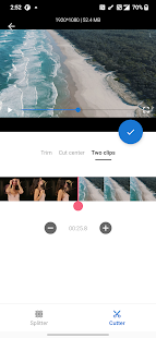 Descriptions : Better Video Splitter allows you to freely split long videos into clips or precisely cut out the favorite part of your video and compress videos with high quality.