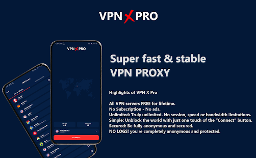 Descriptions : You can connect to the fastest VPN X Proxy servers around the world. More VPN X Proxy servers are constantly being added to your list. Are you experiencing a non-ideal connection speed? Don't worry, just choose another VPN X Proxy server, which usually solves your problem. VPN X Pro is one of the fastest VPN X Proxy service providers on the Play Store. VPN X Pro proxy secures your sensitive data with cutting-edge encryption technology that hides your IP address so no malicious hacker can track your internet activity! VPN Premium Proxy hides your IP address and securely encrypts all of your online traffic for complete privacy protection.