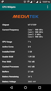 Descriptions : CPU Widgets is a collection of CPU, RAM and battery widgets that display live information right on your homescreen. The CPU Widgets app contains 10 widgets in sizes 4x2, 4x1, 2x2, 2x1 and 1x1.