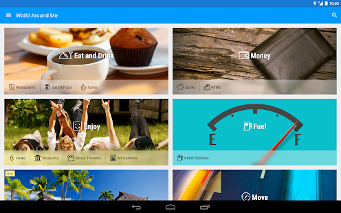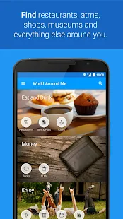Descriptions : World Around Me is a unique way to find useful places near you - like restaurants, ATMs, shops, bus / subway stations, and more. WAM uses your phone's camera to give you a whole new way to explore a place around the world.