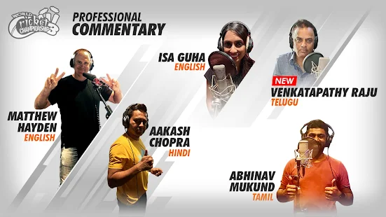 * Professional commentary from Australian cricket legend Matthew Hayden and India's popular cricketer and top commentator Aakash Chopra.